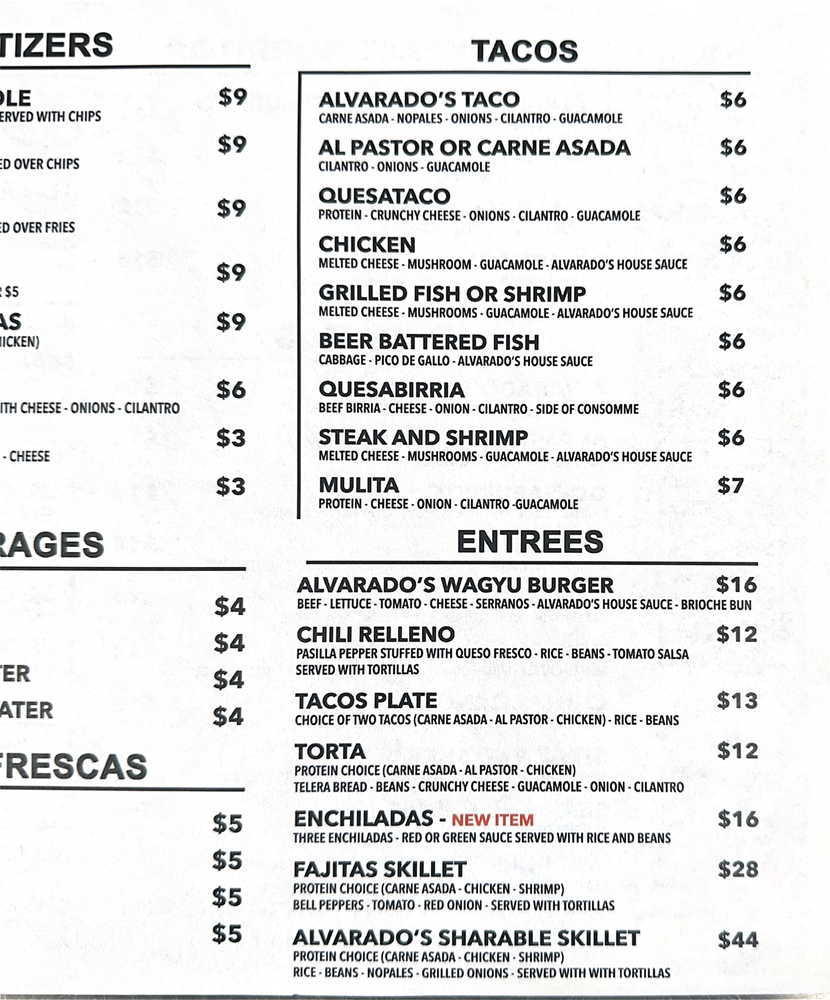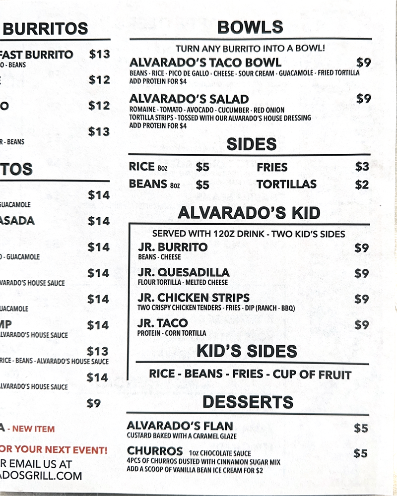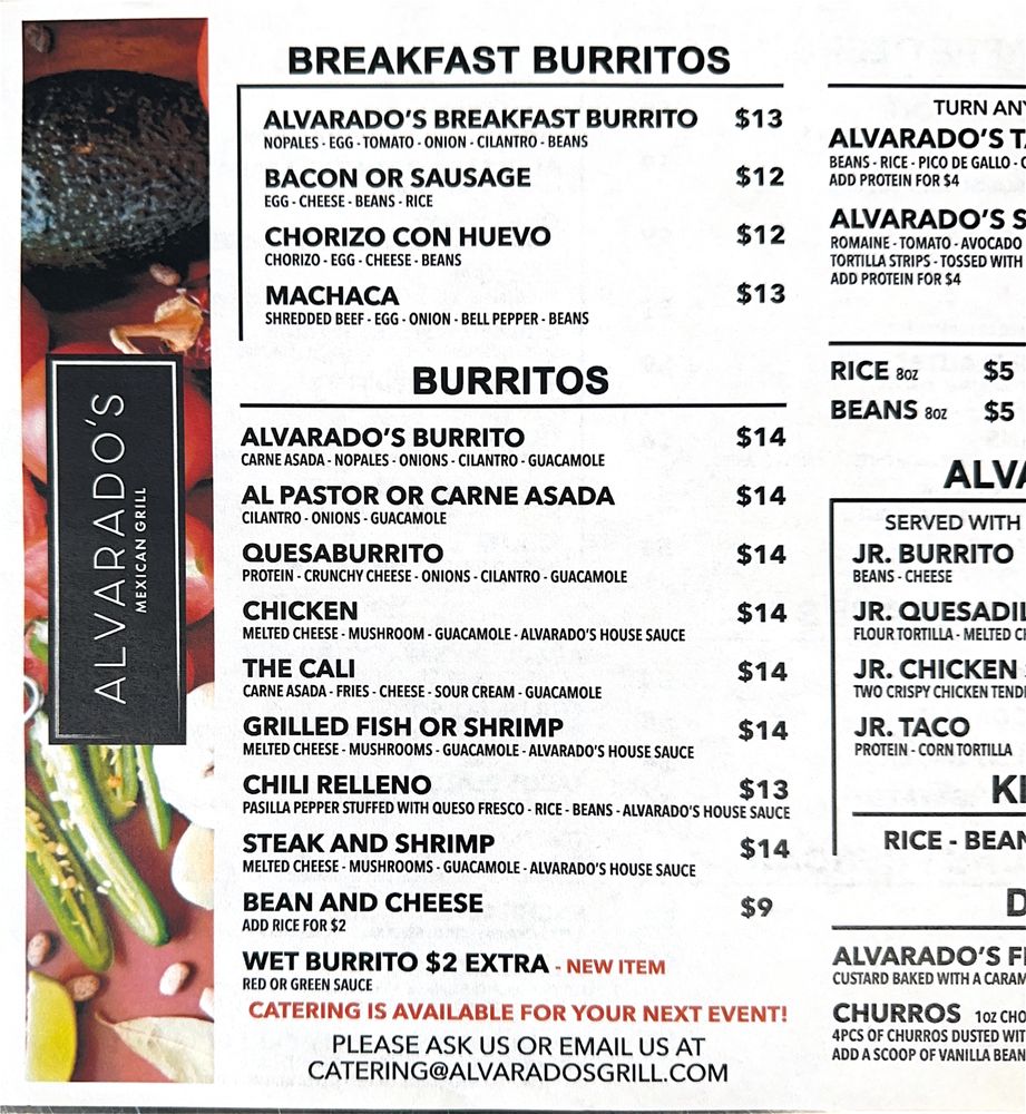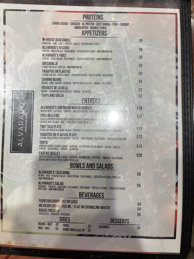 Alvarado’s Mexican Menu